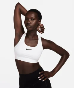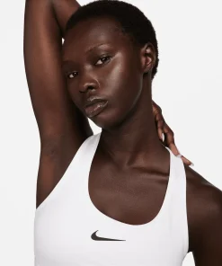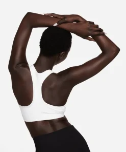 Nike Swoosh Medium Support Sport-BH mit Polster für Damen Für alle Athletinnen, die sich einen Sport-BH wünschen, der alle Trainingsanforderungen erfüllt, haben wir genau das Richtige. Wir haben den klassischen Swoosh-BH neu aufgelegt und das Design aufgewertet, damit du optimalen Tragekomfort genießt. Mit weicherem, elastischerem Material genießt du ein Kompressionsgefühl ohne Einschränkung. Runde dein Design ab mit einer sicheren, eingenähten Polsterung und erweiterten Armlöchern für einfaches An- und Ausziehen. So kannst du dich voll und ganz auf dein Workout konzentrieren. Form, die sich nicht ändert Stützende, eingenähte Polster sorgen für rutschfesten Halt, damit du alles geben kannst ? egal ob beim Gewichtheben oder beim Laufen auf der Laufbahn. Für dich entwickelt Mit besonders elastischem Material, das sich deinen Bedürfnissen im Moment anpasst und sich wie eine zweite Haut mit dir bewegt, wird dein BH das Letzte sein, an das du denkst, während du dich auf das Warm-up, die Wiederholungen und das Cool-down konzentrierst. Außerdem kehrt er nach dem Tragen in seine ursprüngliche Form zurück, damit du jedes Mal die perfekte Passform hast. Trockenes Tragegefühl Die Nike Dri-FIT-Technologie leitet Schweiß von der Haut ab, wodurch er schneller verdunstet, und ermöglicht so trockenen Tragekomfort. Racerback-Träger sorgen für Luftzirkulation in der Hitzezone am Rücken. Das Mesh-Futter sorgt für ein luftiges, kühles Tragegefühl. Der geschmeidige, elastische Bund sorgt für rutschfesten Halt, ohne zu einzuschneiden oder zu zwicken. Der längere Ausschnitt, die Rückseite und die Armausschnitte erleichtern das An- und Ausziehen. Zwei Lagen atmungsaktives, leichtes Material sorgen für mittleren Halt. More Details. Body: 72 % Polyester/28 % Elastan; Mesh: 81 % Polyester/19 % Elastan; Futter hinten: 72 % Polyester/28 % Elastan; Polsterrückseite: 100 % Polyester; Polster: 100 % Polyurethan. Maschinenwäsche. Importiert. 72% POLYESTER. 28% ELASTANE