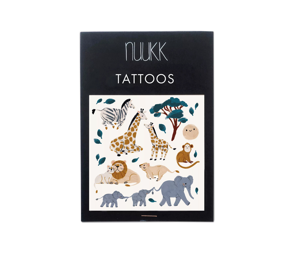 Die süßesten aller Kindertattoos mit einer Crew glücklicher Savannen-Tiere.
