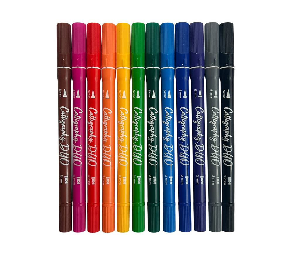 Verwandeln Sie mit diesen Kalligraphie-Markern alles, von Einladungen zu Geburtstagsfeiern über Poster bis hin zu besonderen Nachrichten an Freunde, in ein Kunstwerk. Dieses Set enthält 12 doppelseitige, ungiftige Marker und ist damit ein unverzichtbares Kalligraphie-Starterset zum Erlernen der Kunst des Handletterings. Das superschicke Design verfügt über eine Pinselspitze an einem Ende und eine Meißelspitze am anderen Ende. Das Ende des Pinselspitzenmarkers ist flexibel, während die Keilspitze klarer ist, sodass Sie mit jedem Marker zwei Stiloptionen haben! Kalligraphie-Pinselmarker sind ein tolles Geschenk für Künstler und Bastler gleichermaßen!