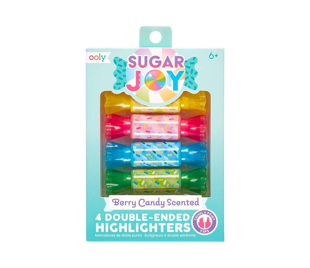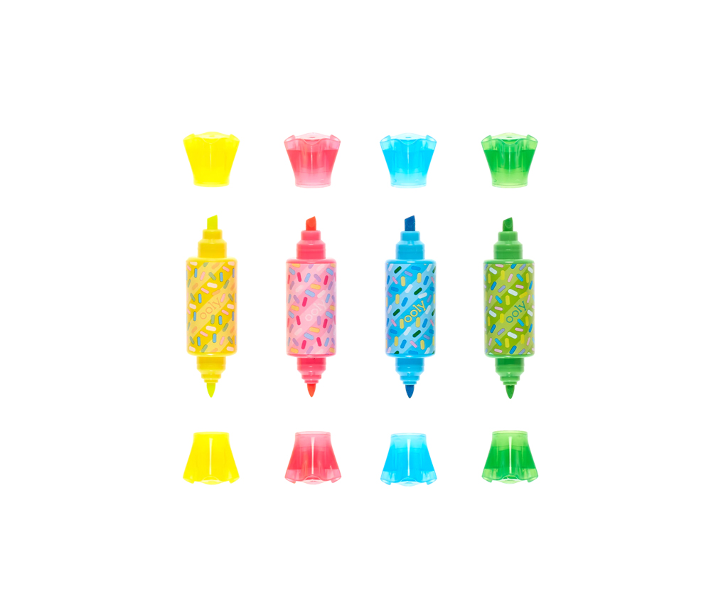 OOLY Sugar Joy doppelseitige Textmarker sind in 4 verschiedenen Farben erhältlich und sind schnell trocknend und verlaufen nicht. Dies sind die perfekten Allzweck-Marker für die Schule und Geschenke für Lehrer. Passt zu OOLY duftenden Gelstiften, Duftmarkern und OOLY Sketchpads