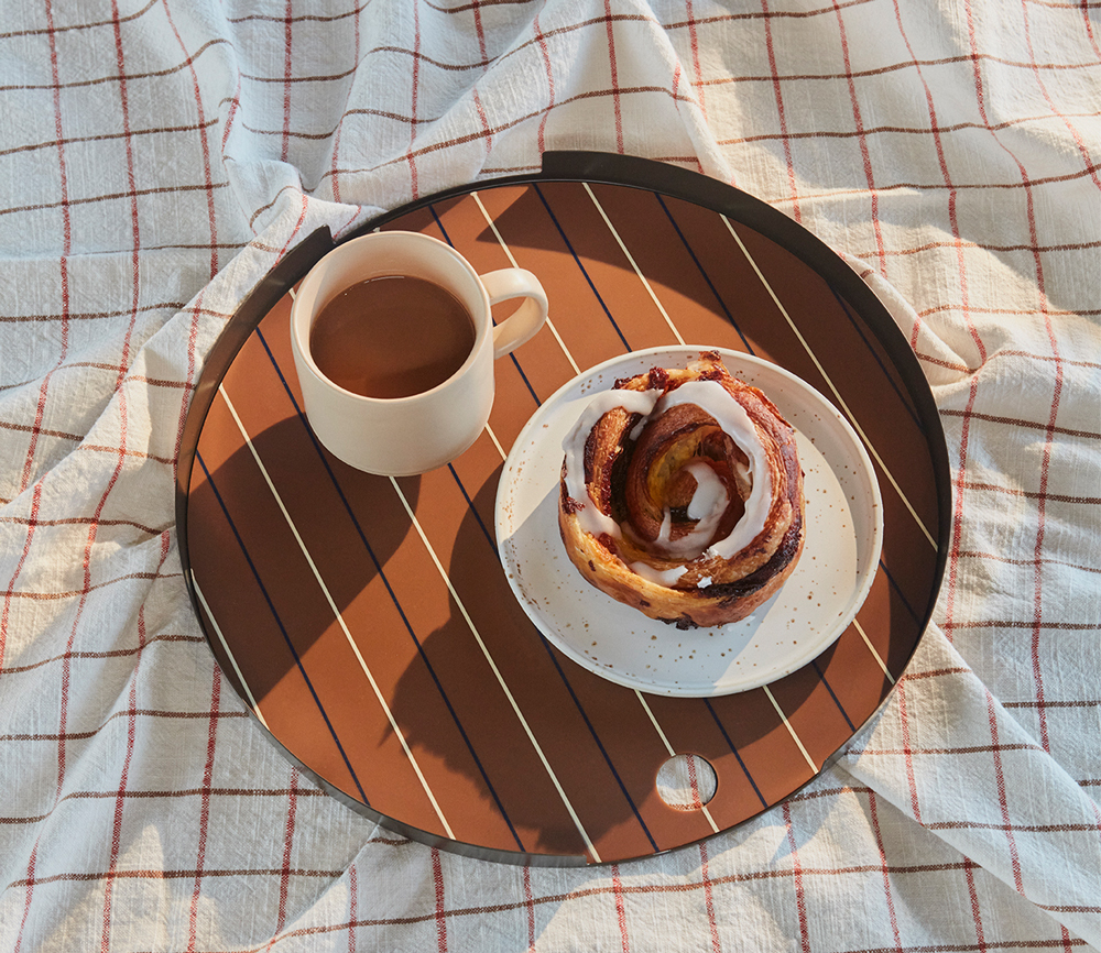 Das Oka Tablett zeichnet sich durch seine schlichte Form aus und lässt sich vielseitig einsetzen. Zum Transportieren von Snacks und Getränken ist das Tablett besonders geeignet. Dank der integrierten Silikon-Matte bleibt das Geschirr an seinem Platz und verrutscht nicht beim Tragen.