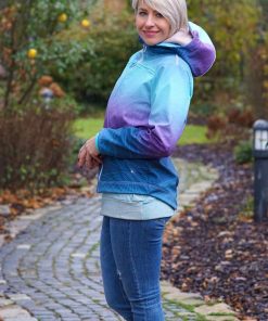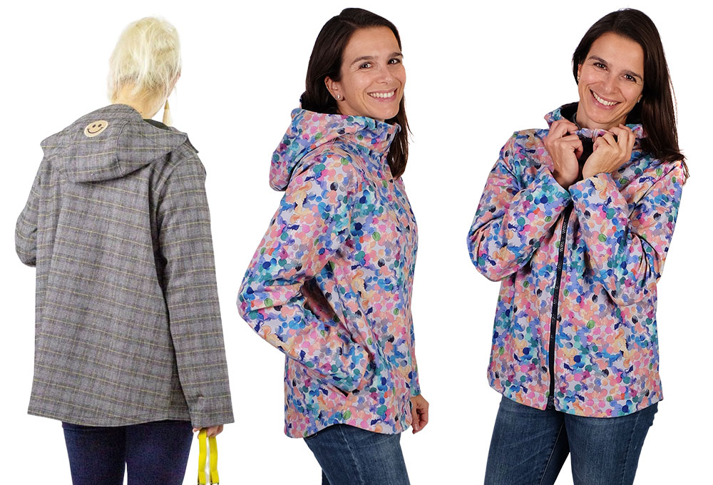 Diese hübsche Damenjacke mit Kapuze kann grundsätzlich aus allen Stoffen genäht werden und bietet viele Variationsmöglichkeiten. Ob mit Passen, Schirm oder mit Bündchen, das Schöne ist dass die Jacke immer wieder anders aussehen kann. Dieses Schnittmuster ist für Fortgeschrittene zu empfehlen.