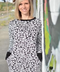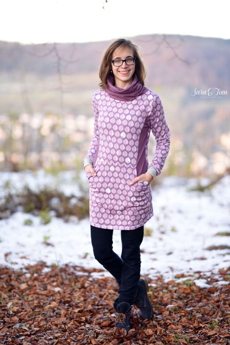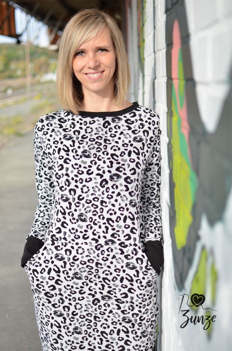 Dieses unkomplizierte Kleid kannst Du in verschiedenen Varianten nähen. Ob als Kleid oder als Shirt, mit Schalkragen oder ohne, Du wirst es sicher nicht nur einmal nähen! Für Kinder von Gr 110-152 gibt es das Schnittmuster übrigens auch!