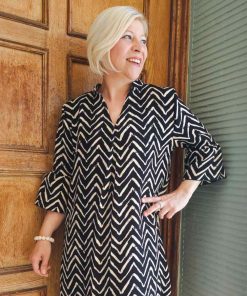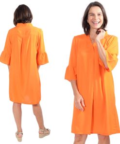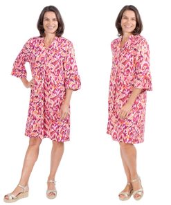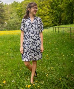 Ein schönes Kleid in mit einer raffinierten Falte im Vorderteil und Rüsche am Ärmel. Es ist ein toller Begleiter durch den Sommer, aber natürlich kannst Du den Arm auch verlängern oder mit einer coolen Strickjacke auch in den kälteren Monaten tragen.