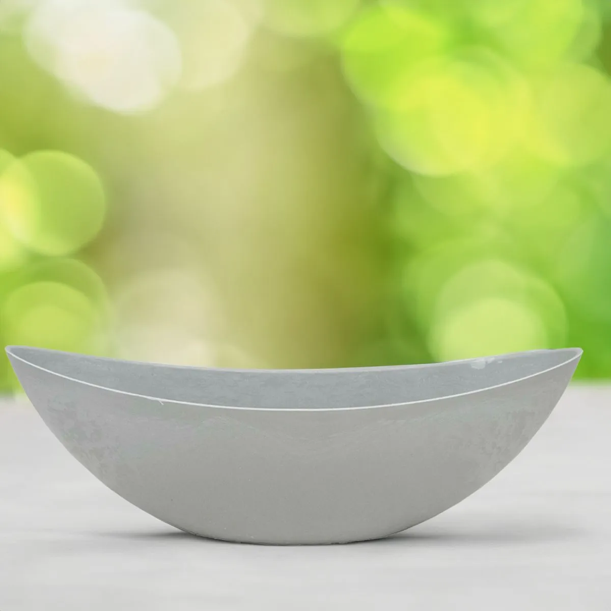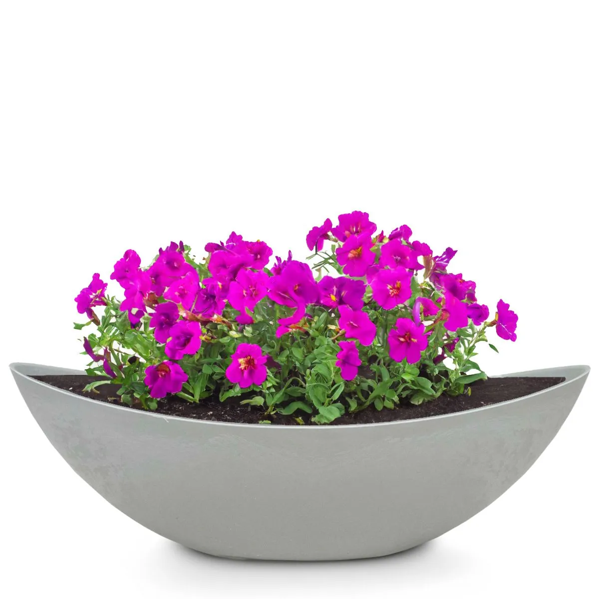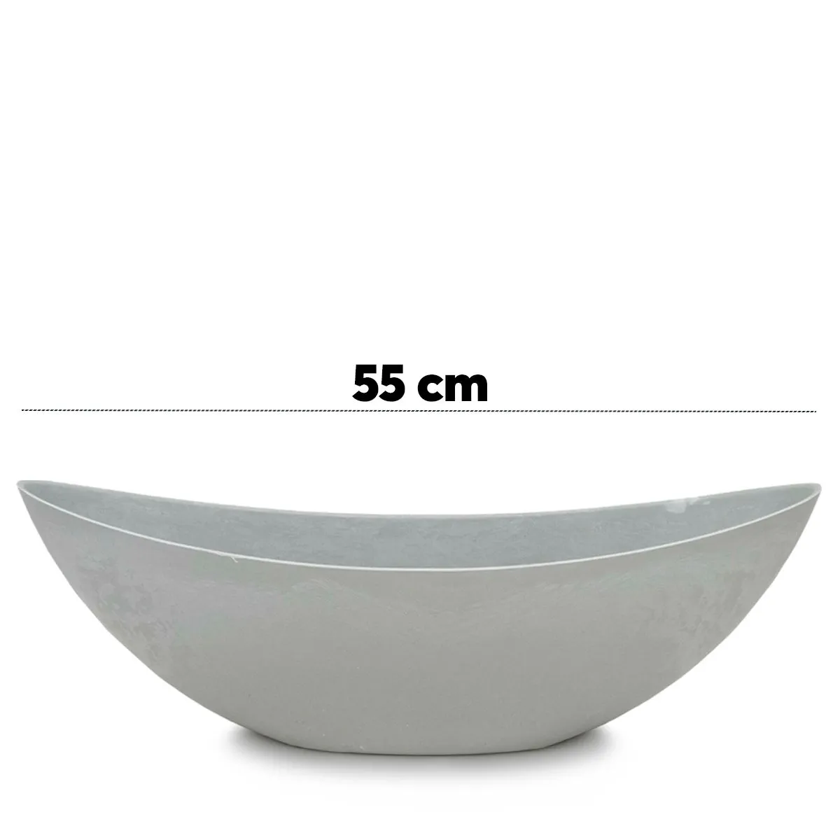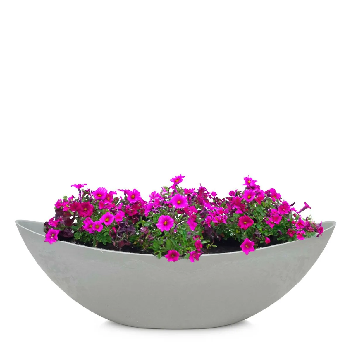Ovale Pflanzschale für draußen – große Schiff Deko-Schale in Stein-Optik hell-grau als Blumen-Topf Pflanztopf – Jardiniere für Garten Balkon oder Friedhof als Grab-Schmuck