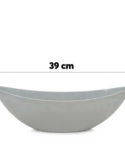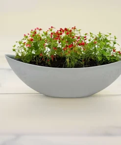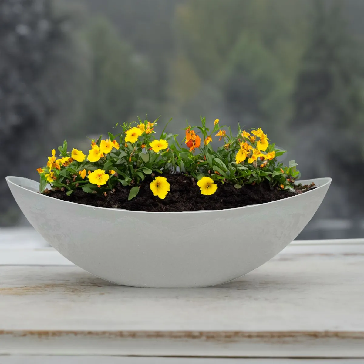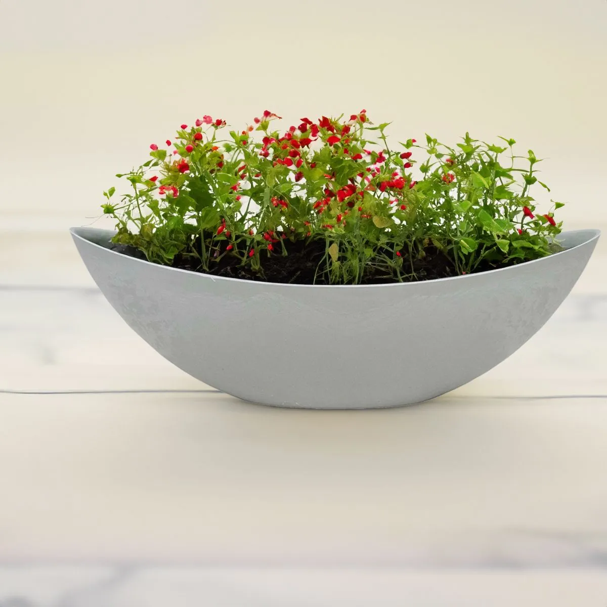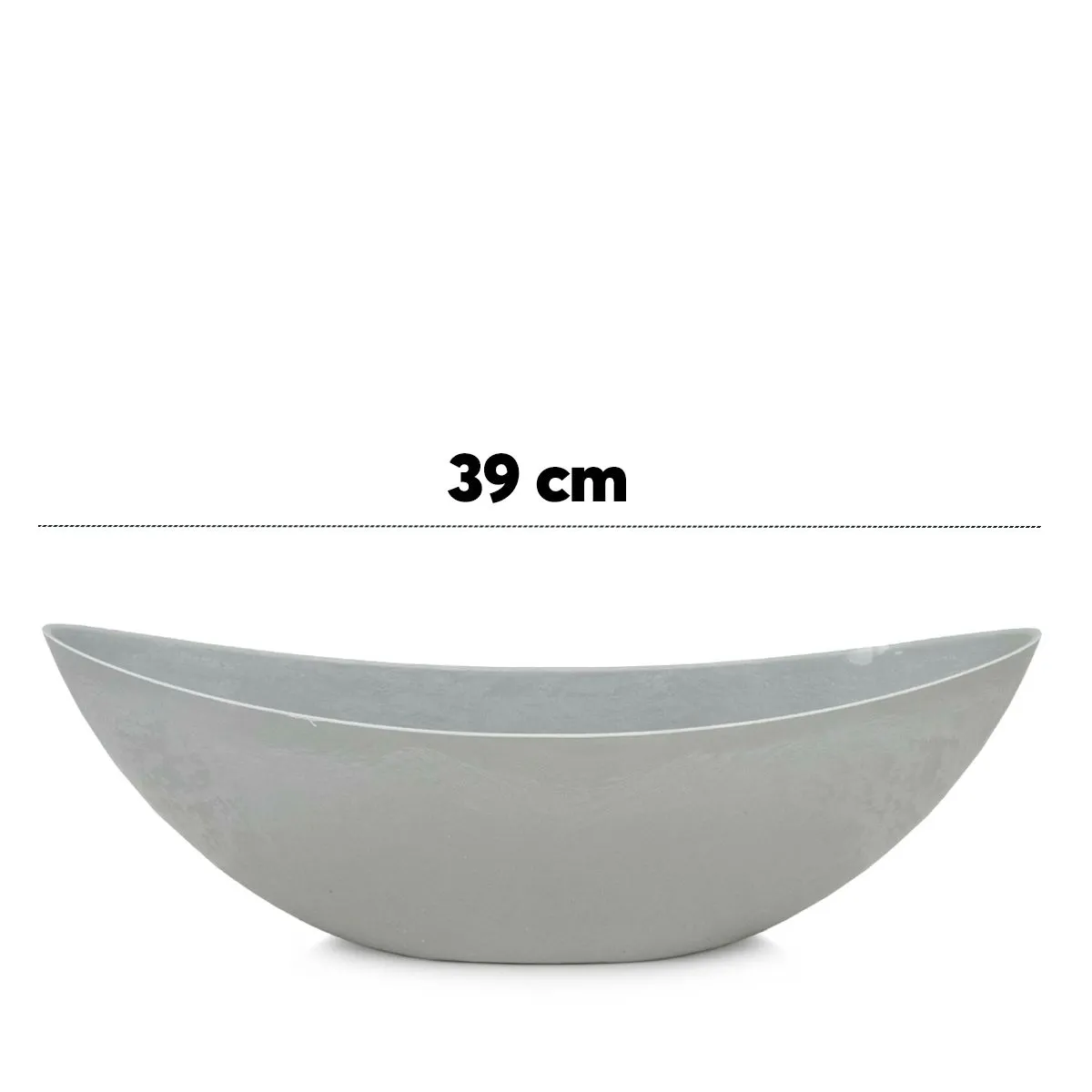 Ovale Pflanzschale für draußen – große Schiff Deko-Schale in Stein-Optik hell-grau als Blumen-Topf Pflanztopf – Jardiniere für Garten Balkon oder Friedhof als Grab-Schmuck