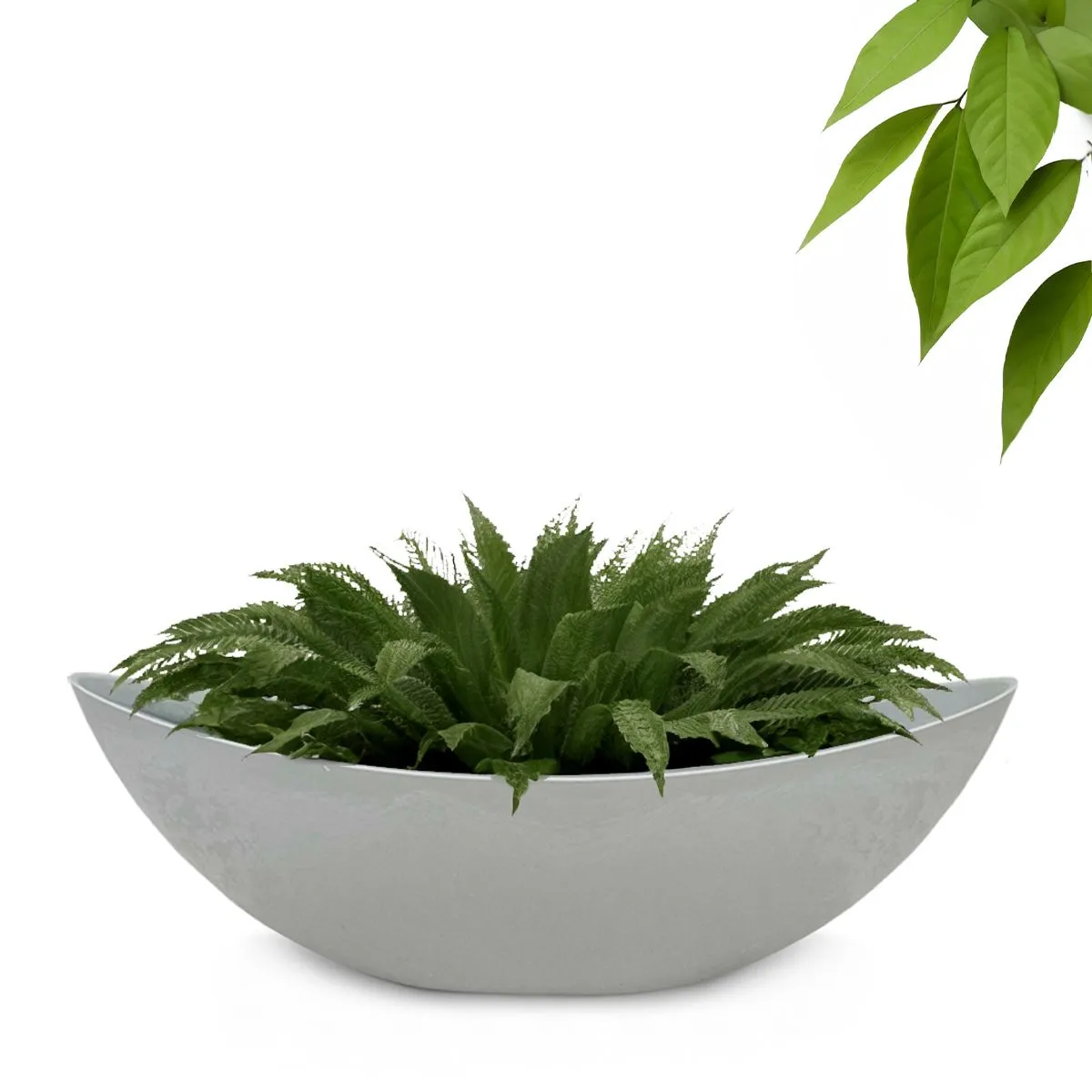 - DEKORATIV: Große, moderne Pflanzschale in ovaler Schiffchen-Form und hell-grau marmorierter Stein-Optik für bildhübsche Dekorationen im Innen- und Außenbereich.