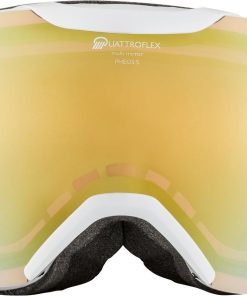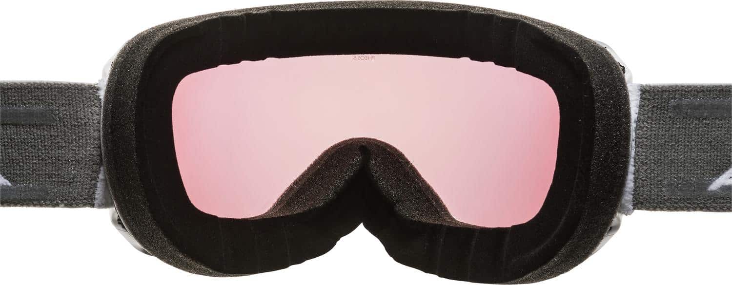 Die Pheos S QV Skibrille von Alpina fällt durch ihr markantes Design auf. Überwiegend ist es rahmenlos, wodurch ein sehr großes Sichtfeld entsteht. Punktuell sorgt der Rahmen für noch mehr Stabilität. Ausgestattet ist die Goggle mit der hochwertigen Highend-Technologie von Alpina: QuattroVarioflex. Damit werden Kontraste verstärkt und störende Reflexionen herausgefiltert. Außerdem passt sich die Tönung der Scheibe automatisch den Lichtverhältnissen an. Abgedeckt werden hierbei die Schutzstufen Cat. 2 bis 3. Heraus kommt die optimale Sicht bei allen Licht- und Wetterverhältnissen. Die Fogstop-Beschichtung auf der Innenseite verhindert ein Beschlagen der Scheibe. Außerdem ist die Doppelscheibe bruchfest und garantiert 100% UV-Schutz. Silikonstreifen am Brillenband garantieren den optimalen Sitz in Kombination mit einem Skihelm. Für sehr hohen Tragekomfort sorgen der flexible Comfort Frame und die bequeme dreilagige Schaumauflage. Die etwas kleinere S-Variante ist am besten für schmälere Gesichter geeignet.