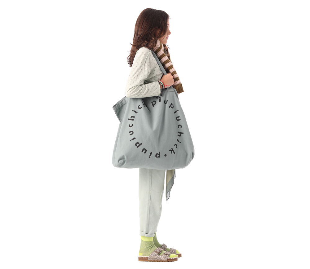 PiuPiuChick – Tragetasche, groß, „XL LOGO“, Canvas, SageGreen