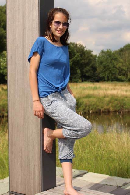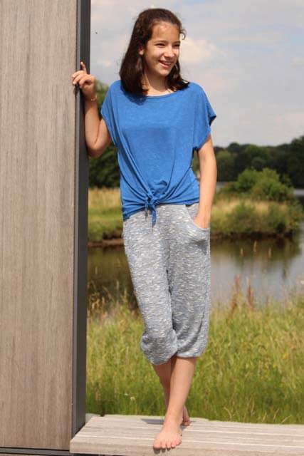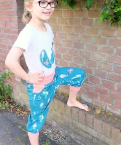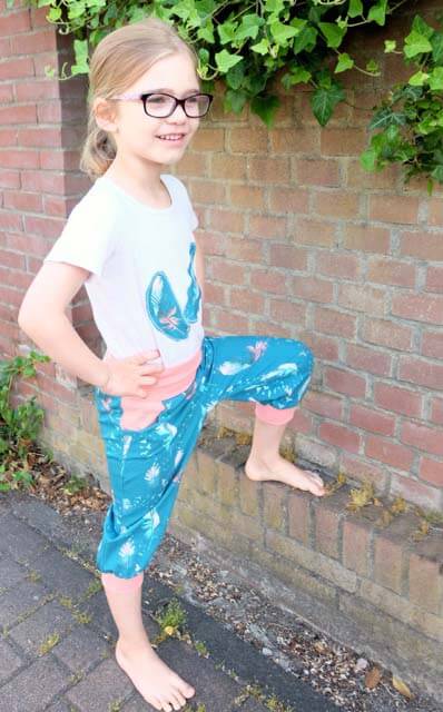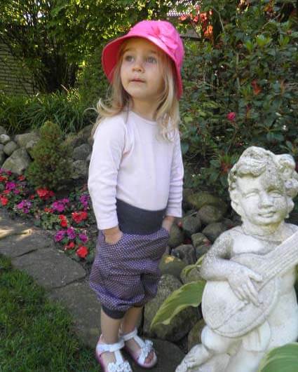 Eine einfache und schnelle Pumphose nähen. Mit oder ohne seitliche Taschen, aus Jersey oder aus Baumwolle, dieses Modell ist vielseitig und schaut immer gut aus. (Der Unterschied zur Hose Maxi ist, dass diese Hose Seitennähte und einen tieferen Schritt hat. Die Hose macht locker 2 Kleidergrößen mit und kann daher sehr lange getragen werden. Außerdem kannst Du die Hose in 3/4-Länge nähen oder in der langen Version. Das Schnittmuster für diese Kinderhose ist auch für Nähanfänger geeignet.