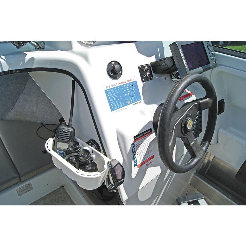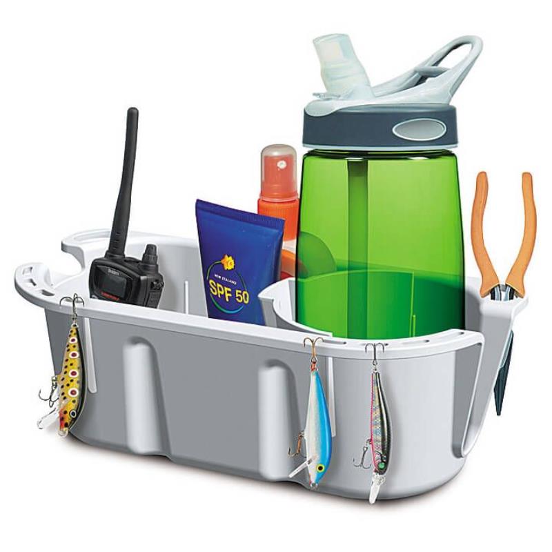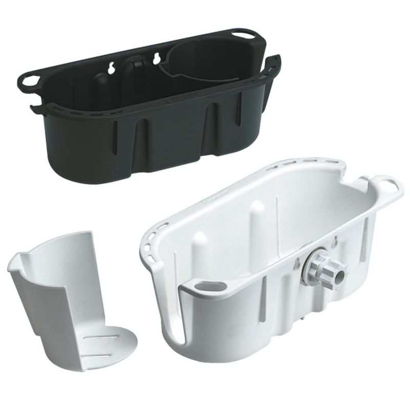 Ein überaus praktischer Behälter, der sowohl an horizontalen als auch vertikalen Flächen, fest oder durch die im Lieferumfang enthaltenen Sternadapter griffbereit angebracht oder gelöst werden kann. Sie haben Schlüssel, Werkzeug, Handy, auch Flaschen und Gläser, sowie viele unentbehrliche Dinge immer griffbereit in Ihrer Nähe, ohne Starport. Maße: 255x105x88 mm.