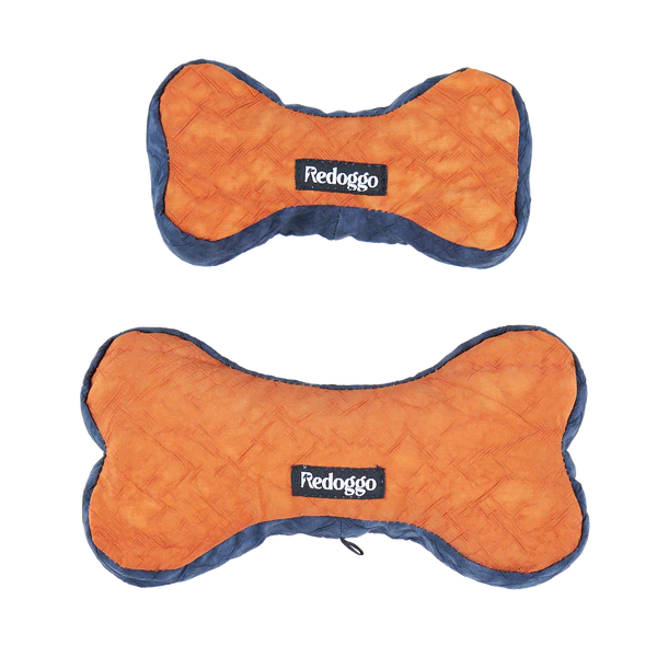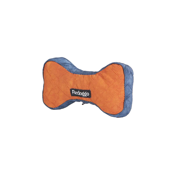 Redoggo, orange/blau Knochen aus Upcycling Auto-Airbag-Material, Füllung aus ehemaligen Sitzgurten, OEKO-TEX® zertifiziert, 7cm (klein)