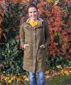 Diese hübsche Regenjacke wird von innen gefüttert, sprich aus 2 verschiedenen Stoffen genäht. Die Regenjacke Camelia ist ein vielseitiges Schnittmuster, da Du dieses aus verschiedenen Stoffen nähen kannst. Aus Regen- oder aus leichten Wachsstoffen, die kreativen Möglichkeiten sind vielfältig. Das Schnittmuster ist nur für Fortgeschrittene zu empfehlen. Die Jacke wird innen mit Jersey abgefüttert. Wer sich unsicher ist ob das ein Nähprojekt ist kann sich ja vorab das Video dazu anschauen. Hier zeigen wir Schritt für Schritt wie dieser Regenmantel genäht wird. Das Schnittmuster kann als Mantel oder als kurze Jacke getragen werden, somit ergibt sich immer wieder ein anderer Look.