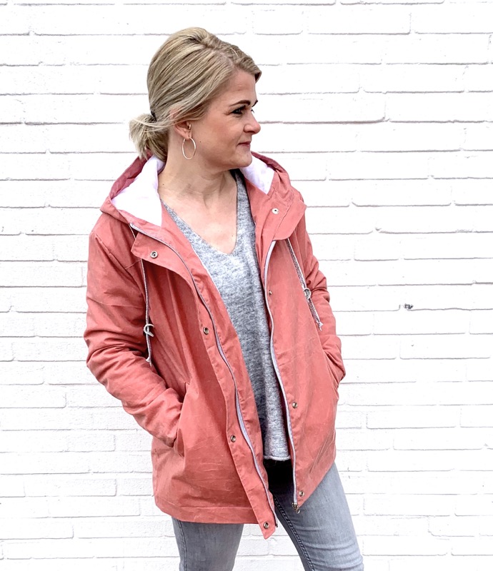 Das Schnittmuster ist weit geschnitten und somit für leicht fallende Stoffe konzipiert, aber auch perfekt für Regenstoffe und leichte beschichtete Stoffe wie Oil Skin Stoffe. Softshell Stoffe sind weniger zu empfehlen. Warum? Weil diese Stoffe mehr Stand haben und die Jacke in sich nicht so schön zusammen fällt. Hier musst Du evtl. eine Nummer kleiner nähen, das ist wie so oft eine Geschmacksfrage.