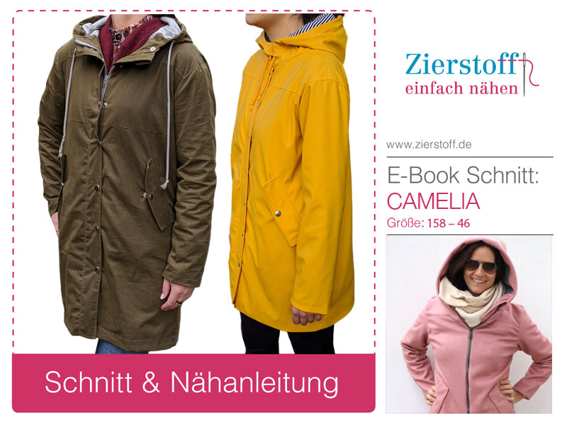 Nähanleitung & Schnittmuster für eine Regenjacke, Regenmantel “Camelia”, Gr. 158 – Damengr. 46