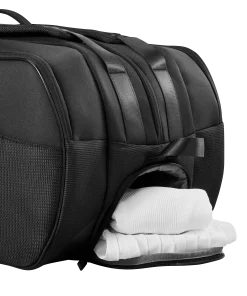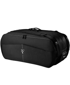 Tolle Ausrüstung verdient besondere Aufmerksamkeit. Die Wilson RF Tournament Racket Bag ist eine Profi-Tasche mit einem Design, das von den majestätischen Schweizer Alpen inspiriert ist ? ein Thema, das sich durch Roger Federers gesamte Kollektion zieht. Diese Tennistasche mit Nadelstreifen zeigt das RF-Logo und ist mit hochwertigen RF-Reißverschlüssen versehen. Sie bietet Platz für bis zu 15 Schläger und verfügt über zwei Seitentaschen sowie ein Schuhfach. Ein Thermoguard-Futter in zwei Taschen schützt Schläger und Saitenspannung vor extremen Temperaturen.