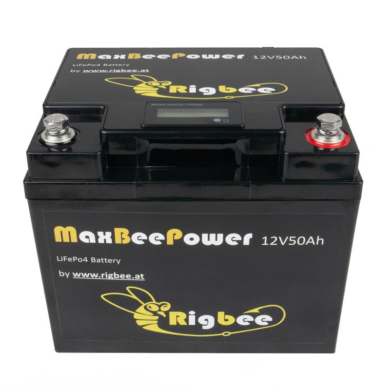 Der Rigbee MaxBeePower 12V50Ah LiFePo4 Akku ist mit der neuesten Li-Ionen-Technik ausgestattet und ersetzt in der Praxis einen herkömmlichen Blei-Akku mit 90-100 Ah und das bei einem Gewicht von nur 6,5kg!