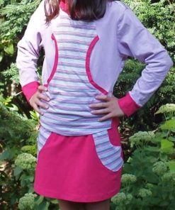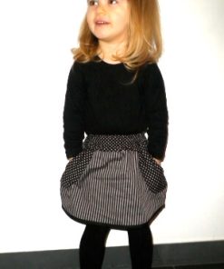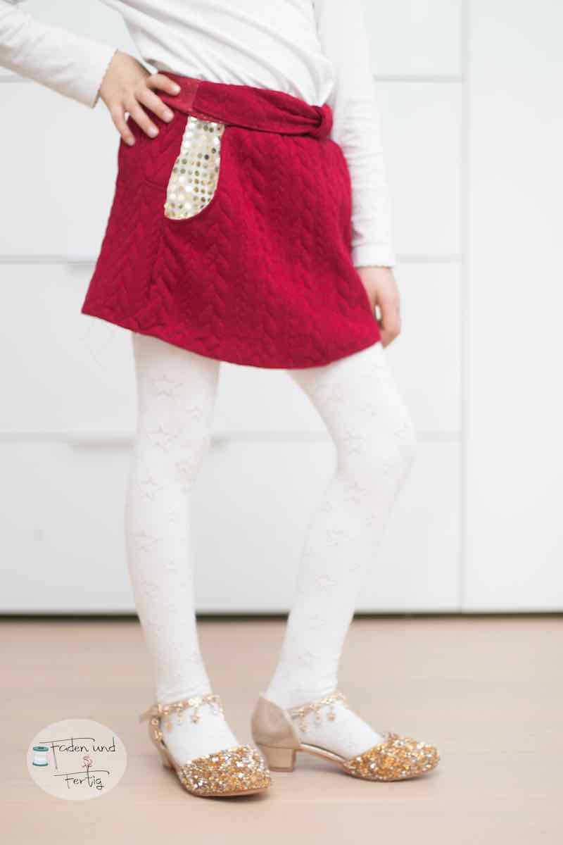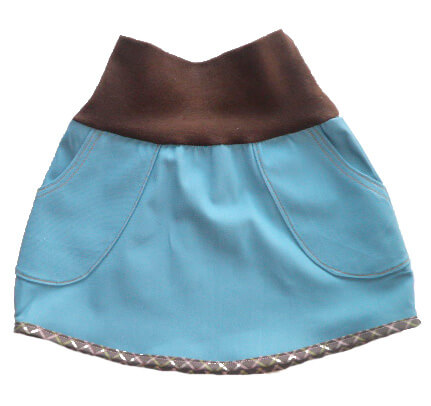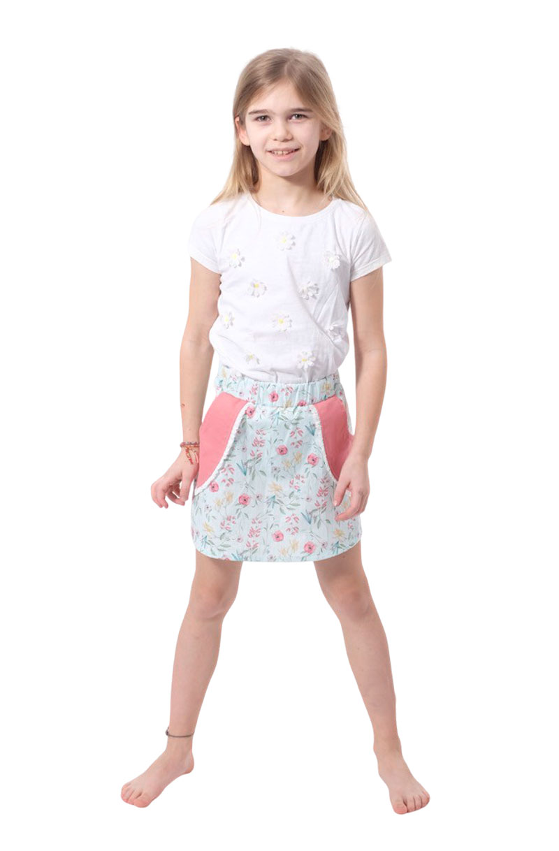 Du möchtest einen super einfachen Rock für Dein Töchterchen zaubern? Ob in Baumwolle, Jersey oder Jeans, der Rock sieht einfach toll aus und ist für alle Jahreszeiten geeignet. Im Schnitt sind zwei Varianten enthalten. Eine an der Seite abgerundete Version und eine gerade Version. Du kannst an beide Varianten entweder ein Strickbündchen oder einen Bund aus Stoff mit Gummiband annähen. Es ist zudem eine separate Anleitung mit dabei, wie Du die aufgesetzte Tasche mit einem Paspel verzieren kannst.