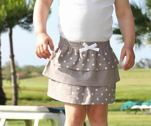 Dieser Stufenrock kann aus Jersey oder aus leichter Baumwolle genäht werden. Mit oder ohne Strumpfhose bzw. Legging ist dieser Rock das ganze Jahr über tragbar. Mixe doch verschiedene Stoffe miteinander oder verbrauche Deine Reste? Dafür ist dieses Modell ideal…