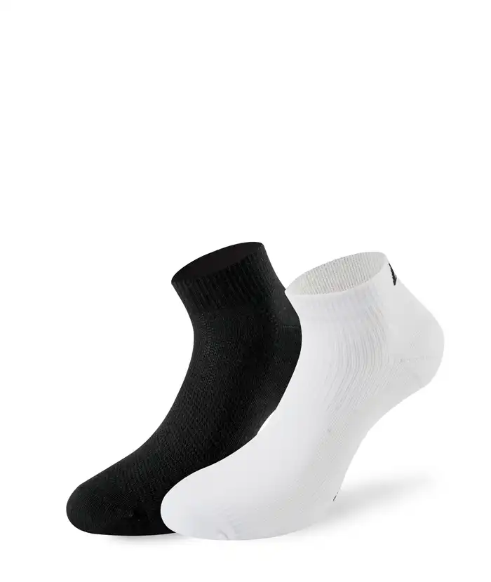 Der Running 3.0 ist der Allround-Sneaker-Laufsocken für wärmere Tage. Durch die 3D-Stricktechnik wird die Luftzirkulation verbessert. Verschiedene Polsterungen im Zehen- und Fersenbereich und die anatomische Zehenbox mit flachen Nähten sorgen für einen falten- und blasenfreien Sitz. Dabei geben die Ringbandage im Mittelfußbereich und das Aktivbündchen zusätzlichen Komfort.