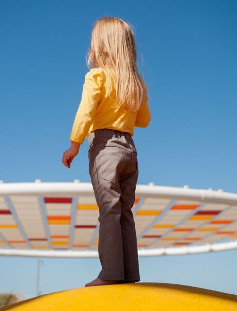 Eine schmal geschnittene Hose für Jungen und Mädchen mit einer Fake RV Verarbeitung. Wenn Du sie einmal genäht hast, wirst Du sie sicher noch ganz oft nähen! Die Hose sieht durch unterschiedliche Stoffe und Verarbeitungsmöglichkeiten auch immer wieder anders aus. Du kannst die Hose in allen gestretchten Materialien nähen, somit ist sie auch das ganze Jahr über einsetzbar. Wir erklären im Ebook auch noch eine einfache Variante für das Bündchen ohne Knopflochgummi. In dem unten erwähnten Video zeigen wir auch, wie Ihr diese Hose abändern oder pimpen könnt.