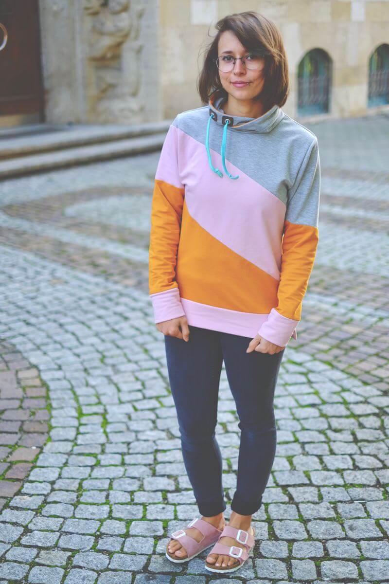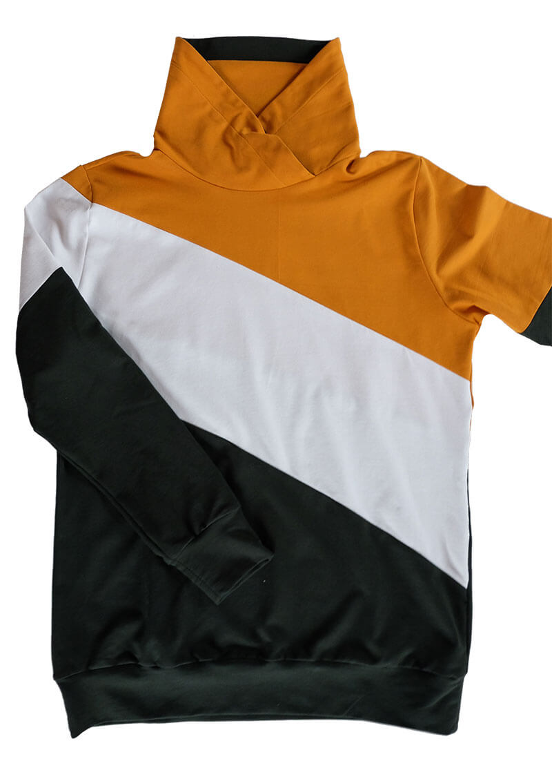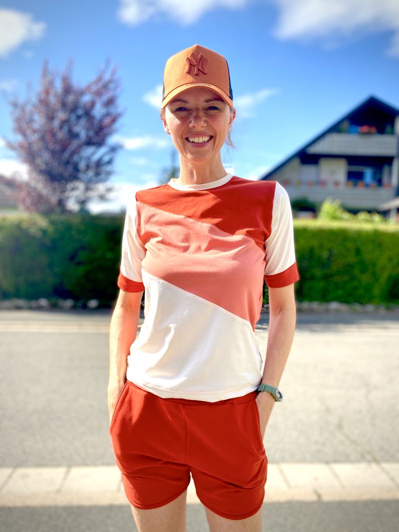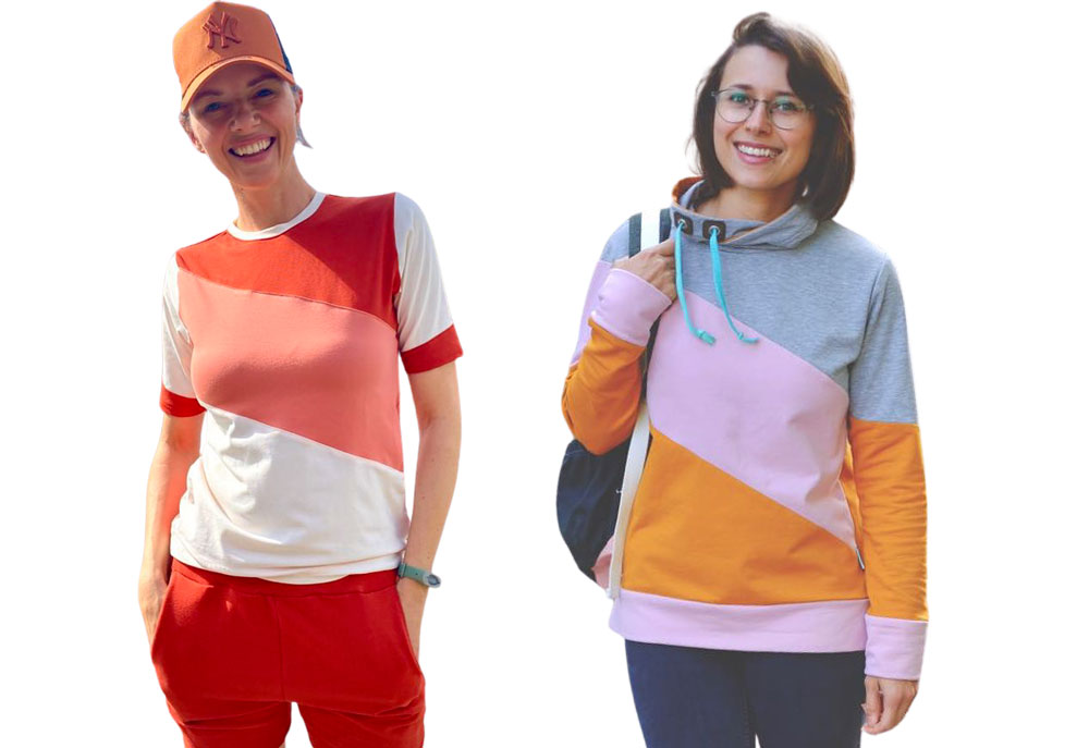 Stoffempfehlung: Dehnbare Stoffe. Wir haben für die Bebilderung verschiedene Jerseystoffe verwendet. Natürlich kannst Du aber auch alles aus einem Stoff zuschneiden, hier sind alle Varianten möglich.