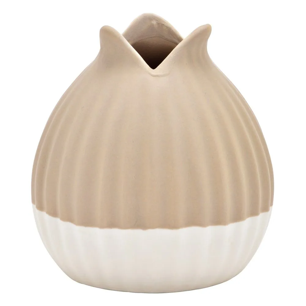 - Schöne Keramikvase in einem zarten Beige und Weiß in Form einer geschlossenen Tulpe für deine Wohnzimmer Deko