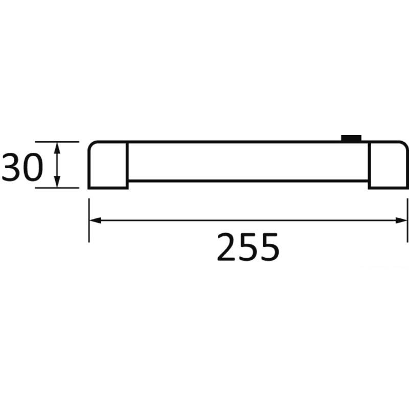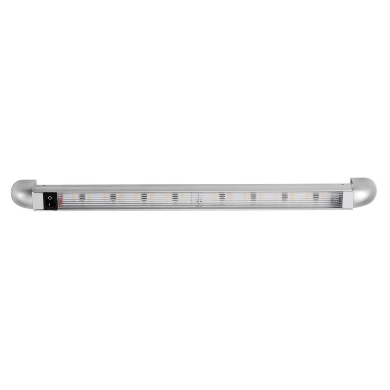LED mit hoher Leuchtleistung und eingebautem Schalter. Gehäuse aus eloxiertem Aluminium, Frontabdeckung aus mattem Glas.