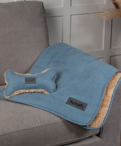 Scruffs Cosy Blanket & Bone Toy Set, Wildlederimitat (Mikrofaser) und weicher Plüsch, Decke 110 x 72,5cm, blau