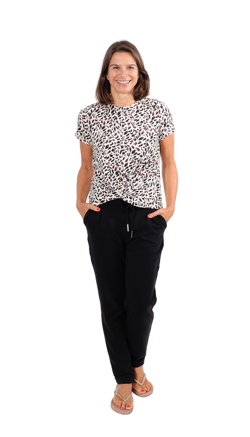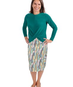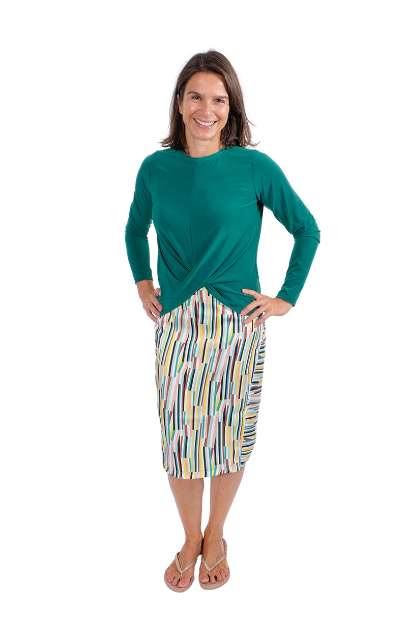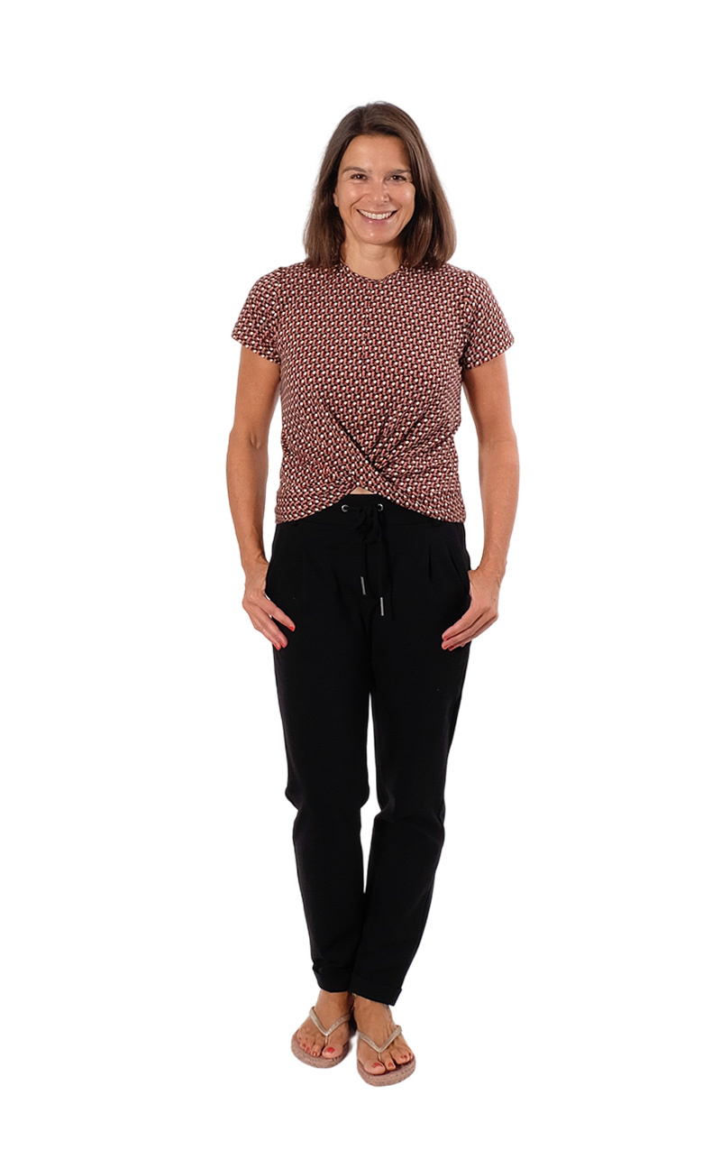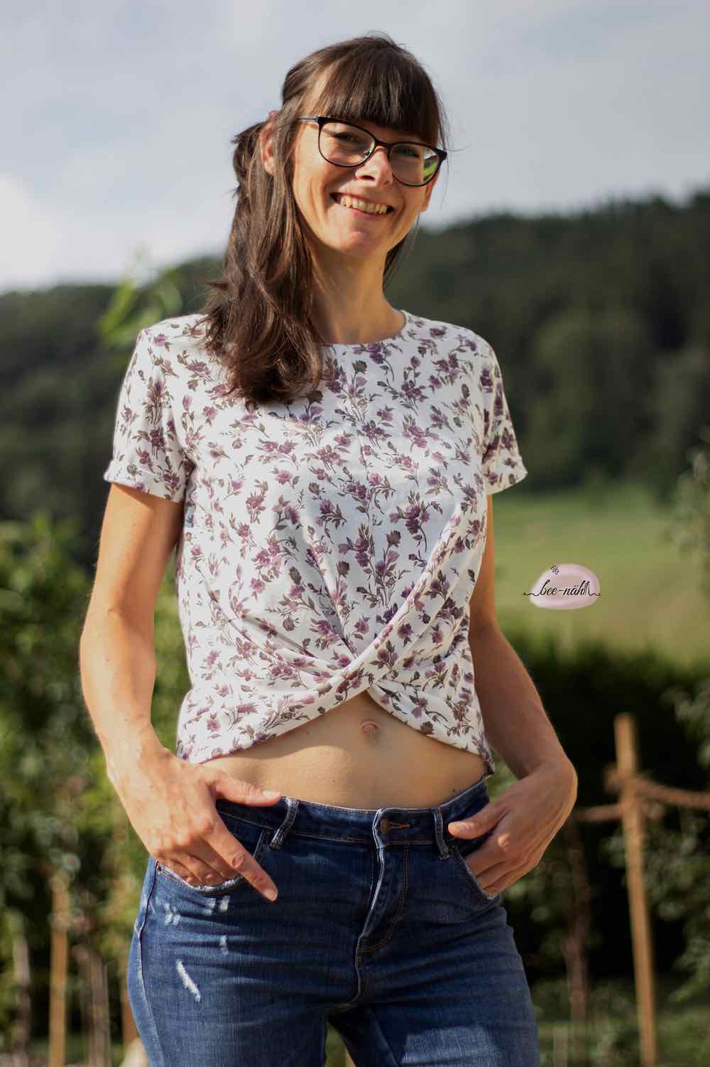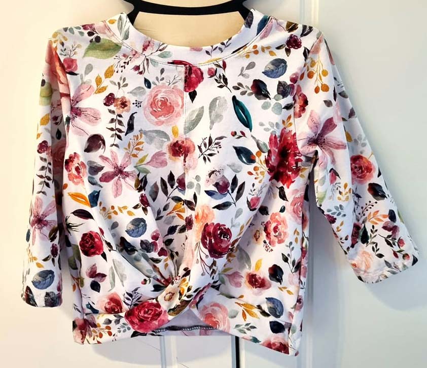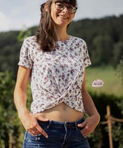 Dieses Shirt mit einem Knoteneffekt ist ein toller Begleiter durch das ganze Jahr. Das Besondere ist, dass der Saum am Vorderteil angeschnitten ist und dann übereinander gelegt angenäht wird. Du kannst zwischen 3 verschiedenen Armlängen und 2 Rumpflängen wählen.