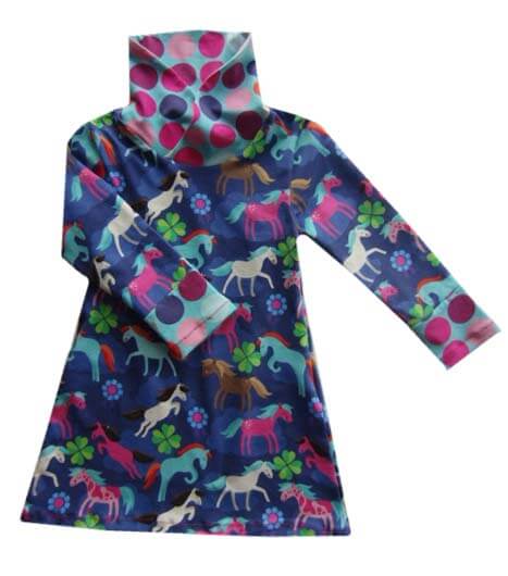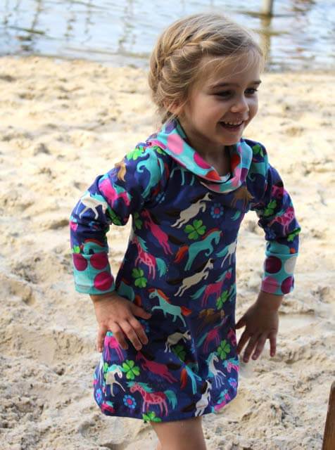Nähanleitung & Schnitt Schalkragenshirt/Kleid “LENA”, Gr. 110 – 152