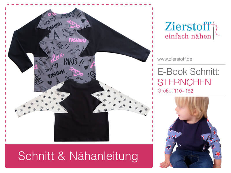 Nähanleitung & Schnitt für ein Shirt mit Sternen-Ärmel “STERNCHEN”, Gr. 110 – 152