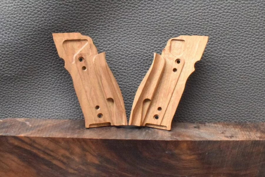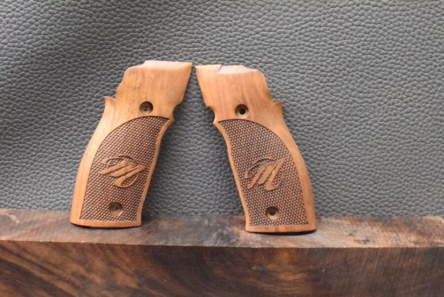 Beretta Mod.92FS, Motiv gestreifte Oberfläche mit PB Logo Messing, Walnuss, Neuware zum Sonderpreis!