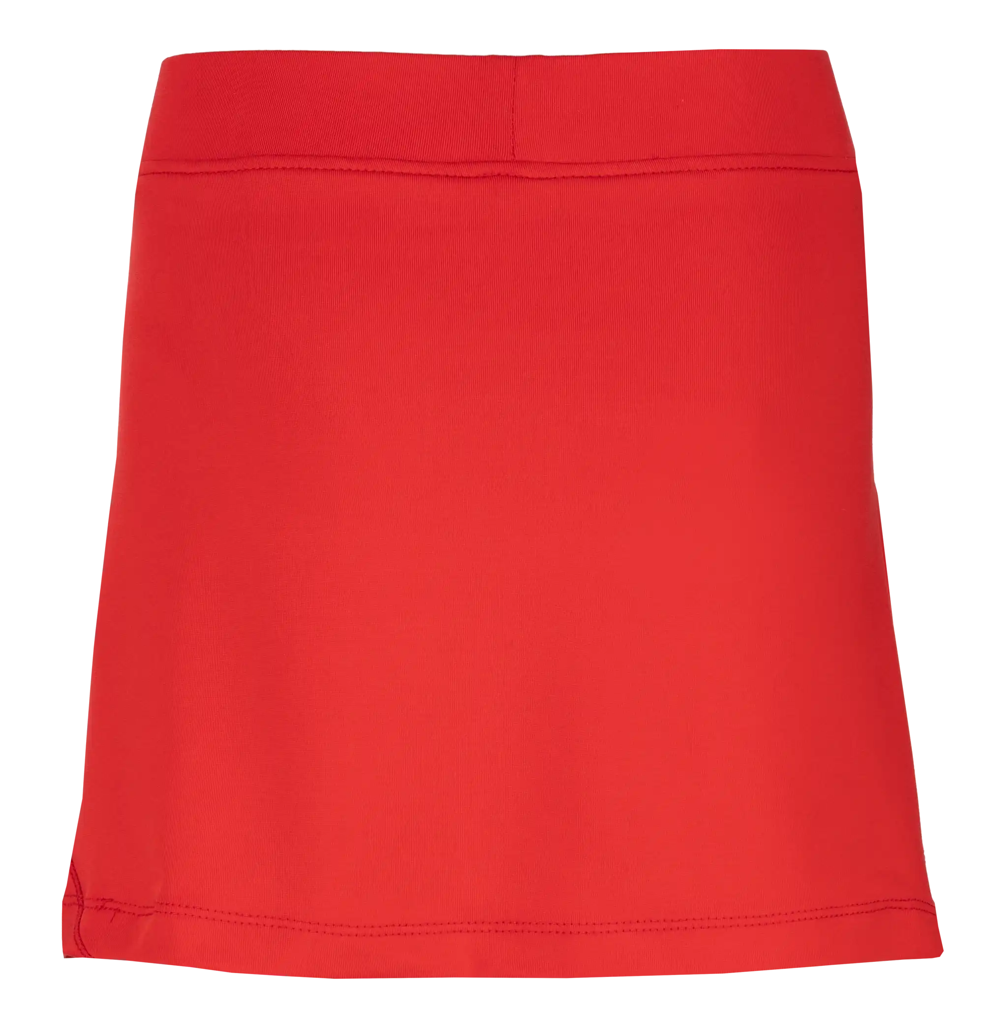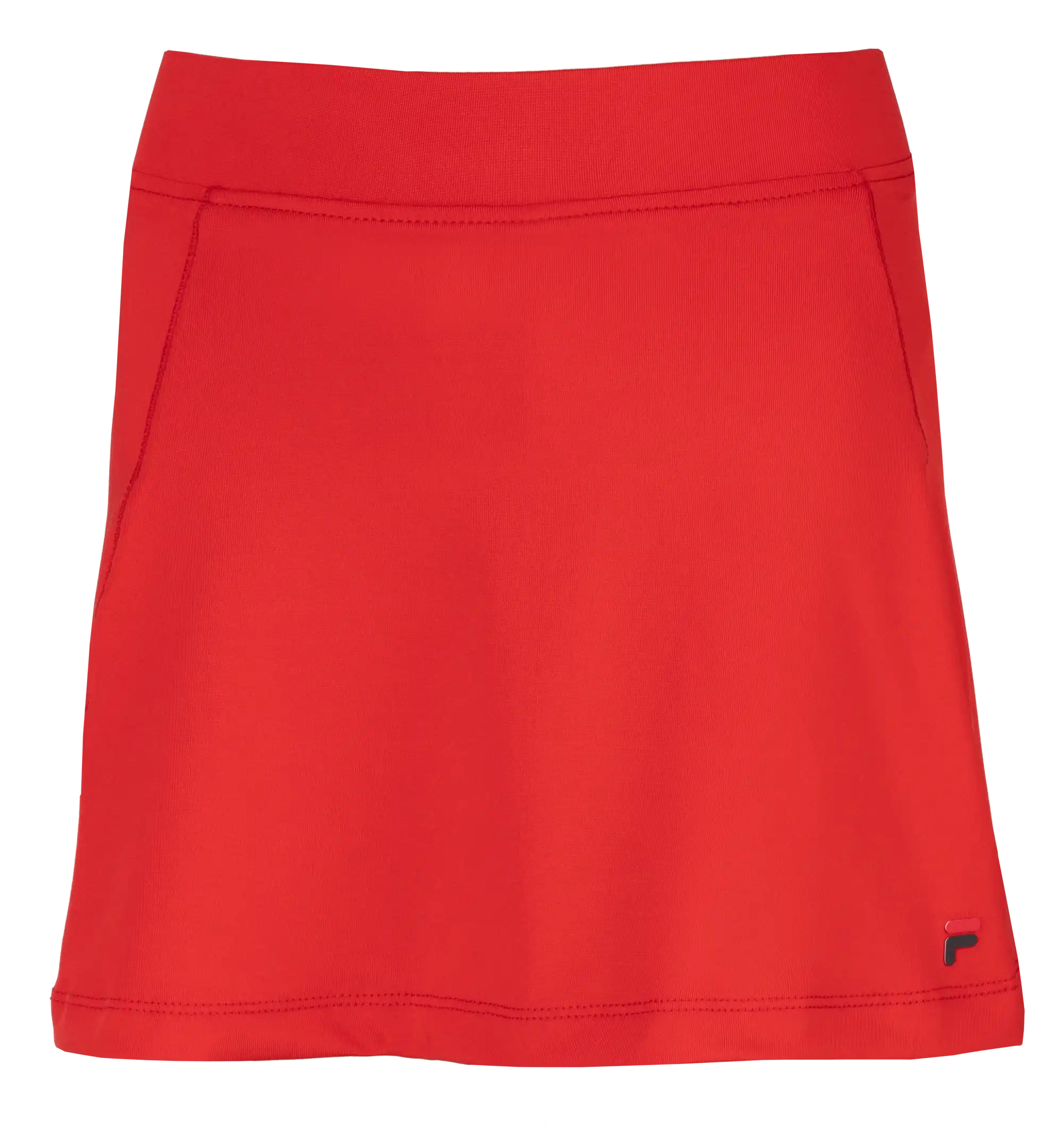 Skort Sonia Girls – modisch klassischer Tennisrock. Durch das vollelastische, hochfunktionelle Material und der integrierten Ballhose ist er sehr angenehm zu tragen. Die schräg verlaufenden Seitennähte lockern die Form auf. Kleines Fila-Logo am unteren Saumende.