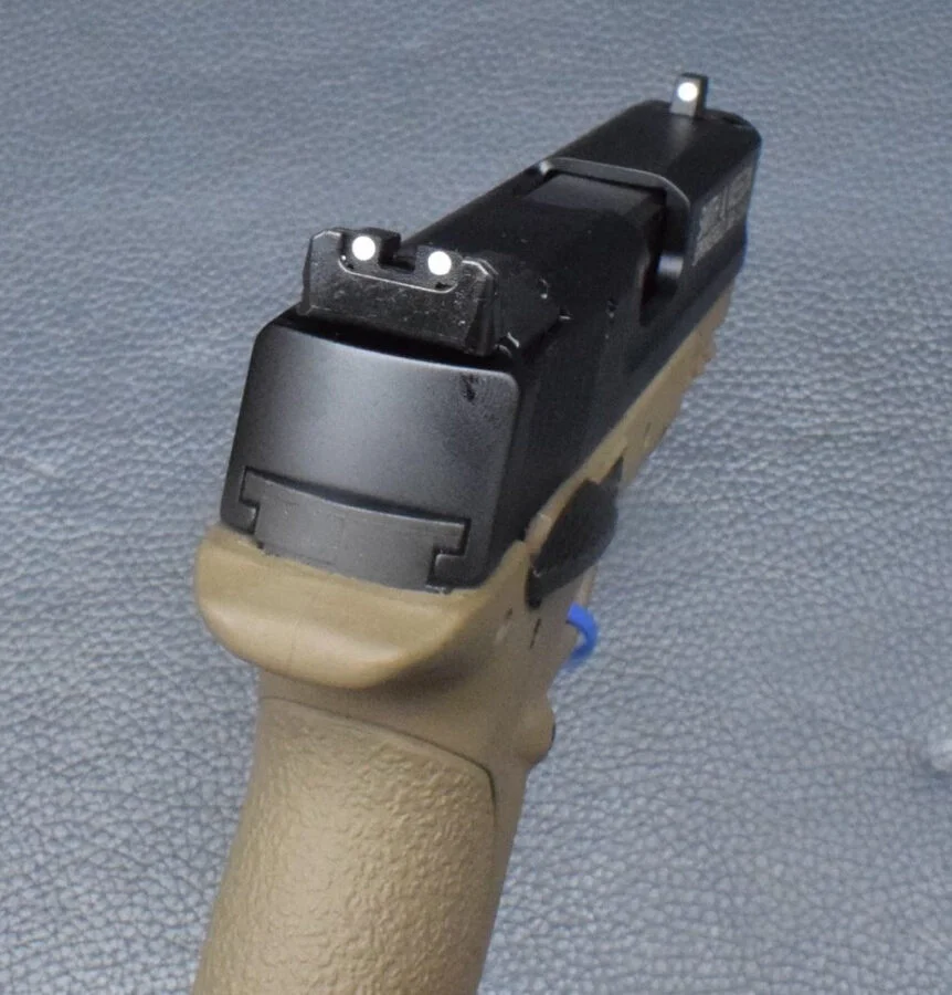 Als Visierung dient der MP 22 eine verstellbare Kimme mit zwei weißen Punkten und ein Korn mit einem weißen Punkt.