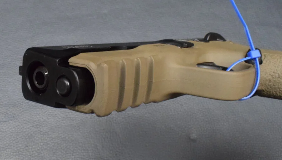 dass die Pistole ohne eingesetztes Magazin nicht abgefeuert werden kann.