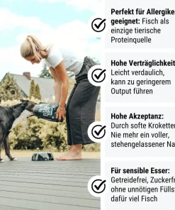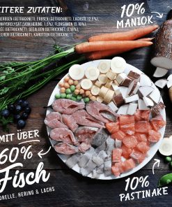 Machen wir mit links, denn so viel frischen Fisch hast du selten in einem Sack gesehen. Ganze frische Forelle und ganzer frischer Hering in ihrer saftigsten Form. Und wie ihr wisst können eure Fellnasen von Fisch nie genug bekommen, denn Fisch ist lecker und gut für ein natürliches Fell und eine natürliche Haut. Hochwertiges softes Hundefutter für den extra saftigen Geschmack, ganz ohne Zusatz von Zucker und Getreide.