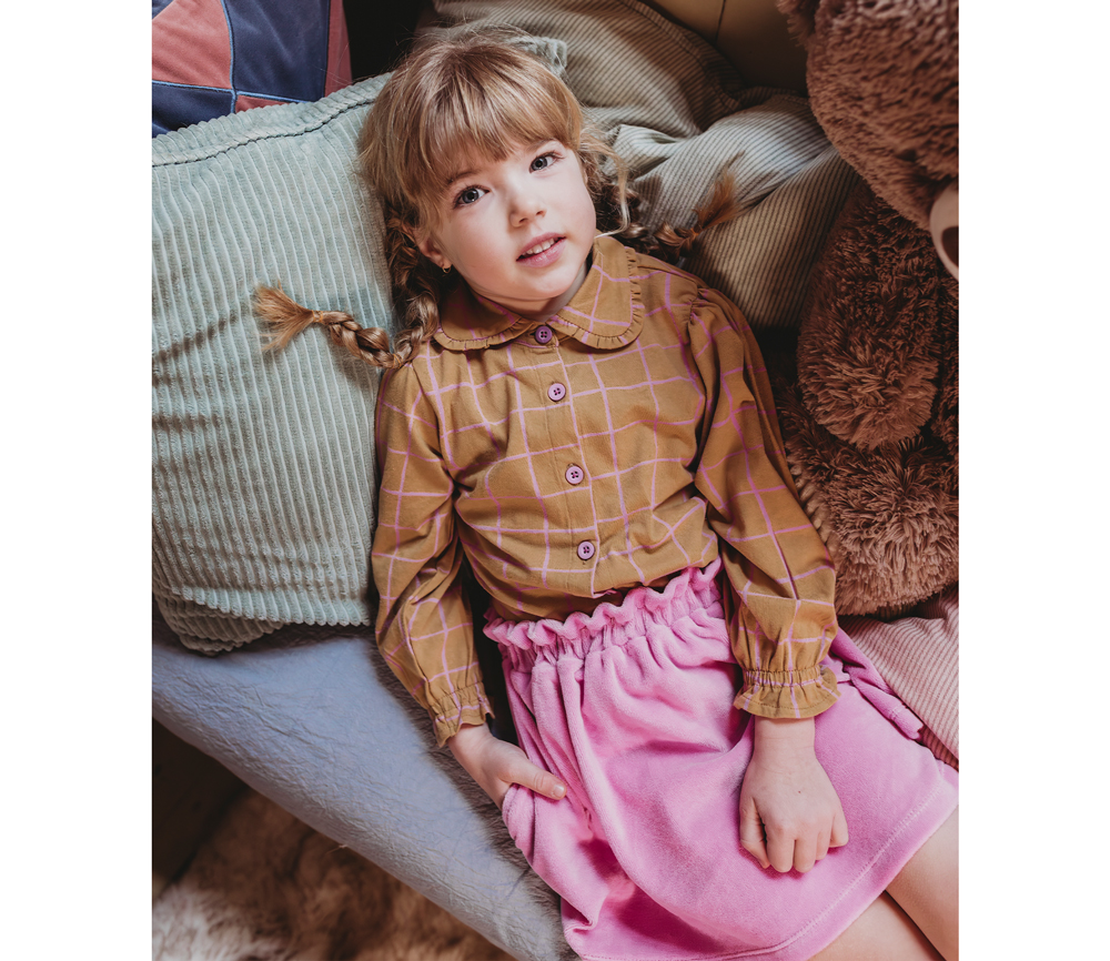 Zauberhafte Bluse mit Peter Pan Kragen, locker sitzend und leichten Puffärmeln.