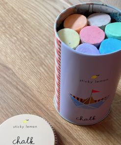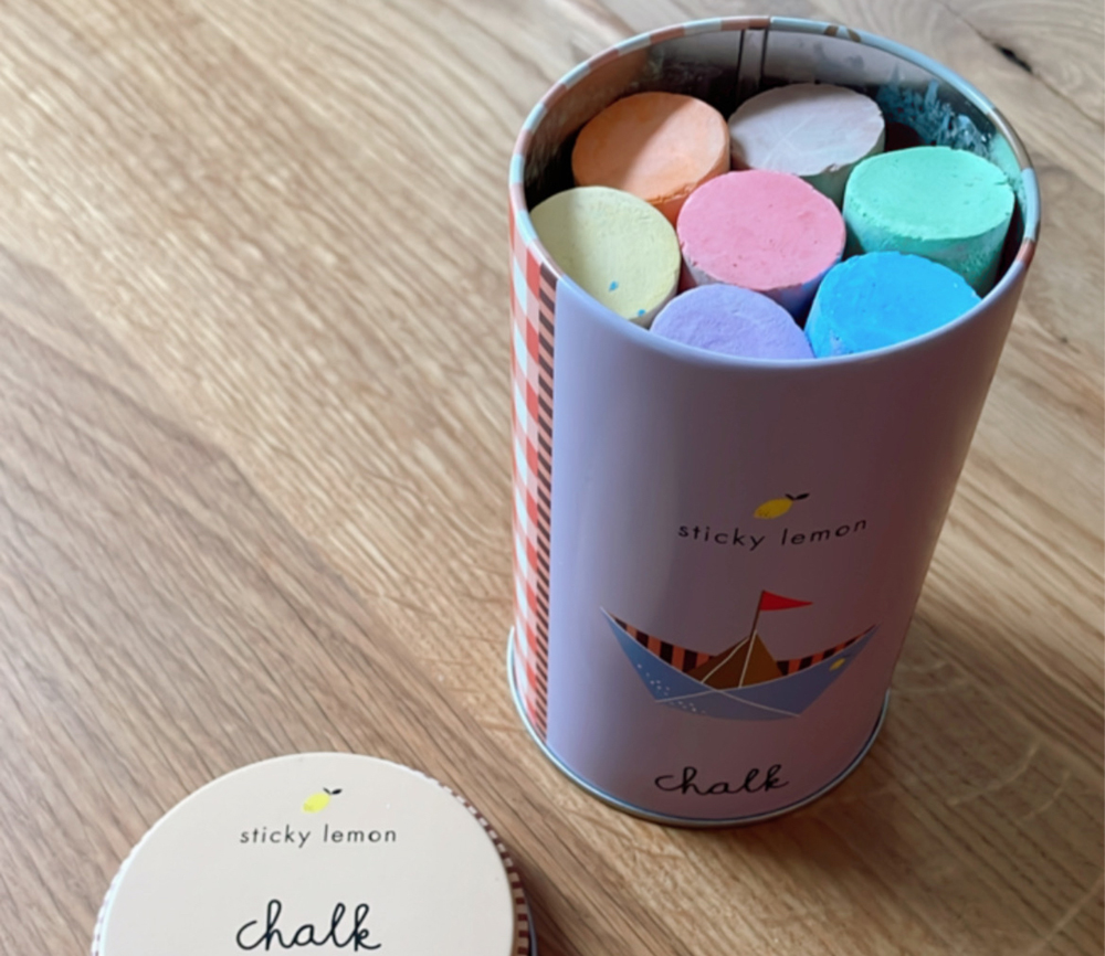 Eine schöne Freizeitbeschäftigung, draussen die Wege zu bemalen. Mit den schönen Farben und den dicken, griffigen Kreidestücken, können die Kinder ihrer Kreativität freien Lauf geben. Und die schöne Dose kann später als Stiftehalter benutzt werden.