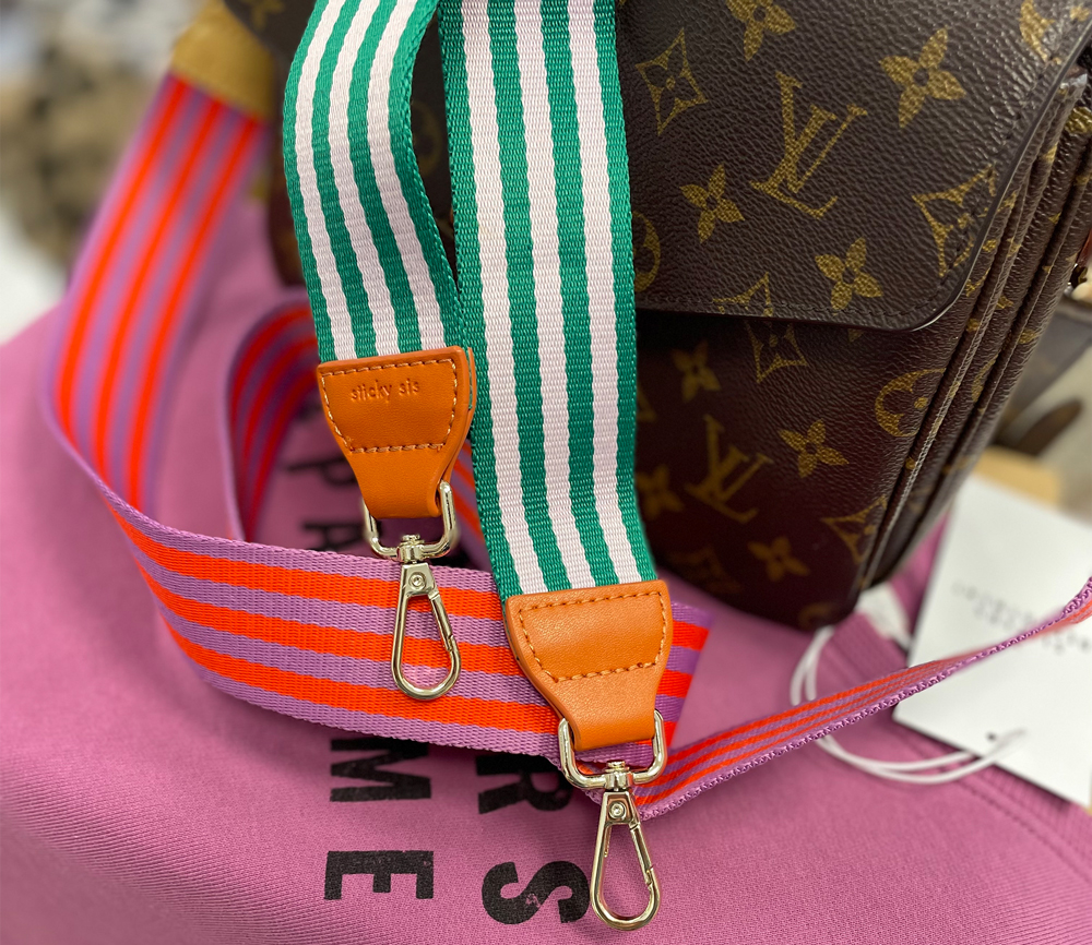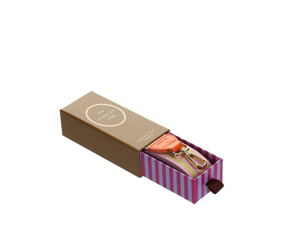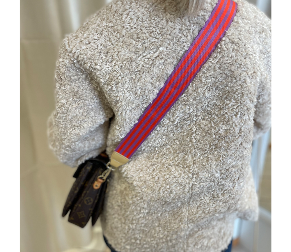 Ein gewebter Schulterriemen mit einem PU-Detail und mit goldenen Schnallen. Der Riemen passt auf jede Umhängetasche und jeden Schulranzen. Es kommt in einer schönen Geschenkbox.