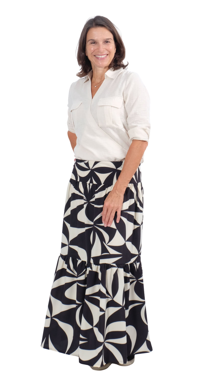 Dieser Stufenrock ist einfach zu nähen und ein tolles Projekt für Anfänger. Hier sieht die Bluse Nalva auch gut dazu aus.