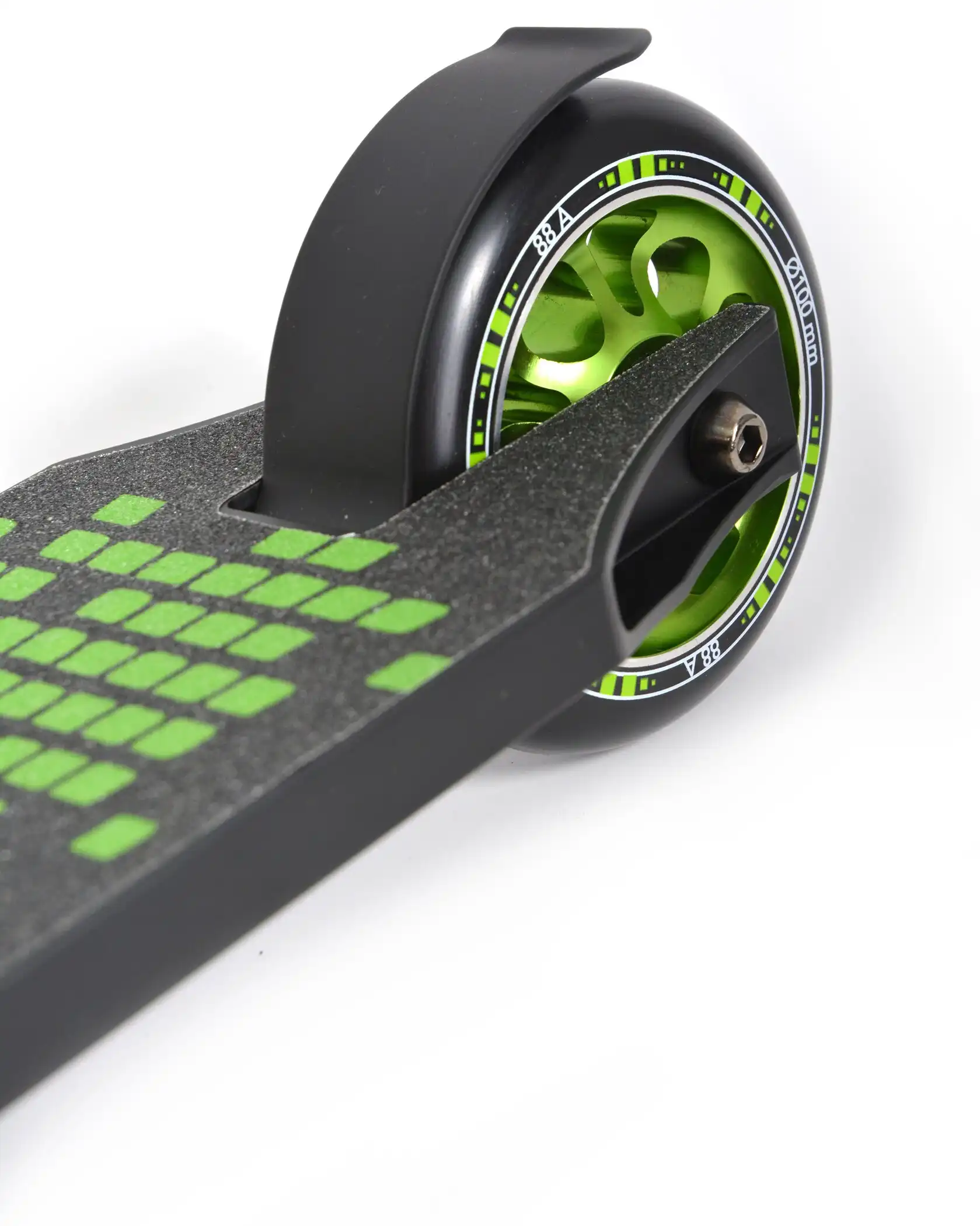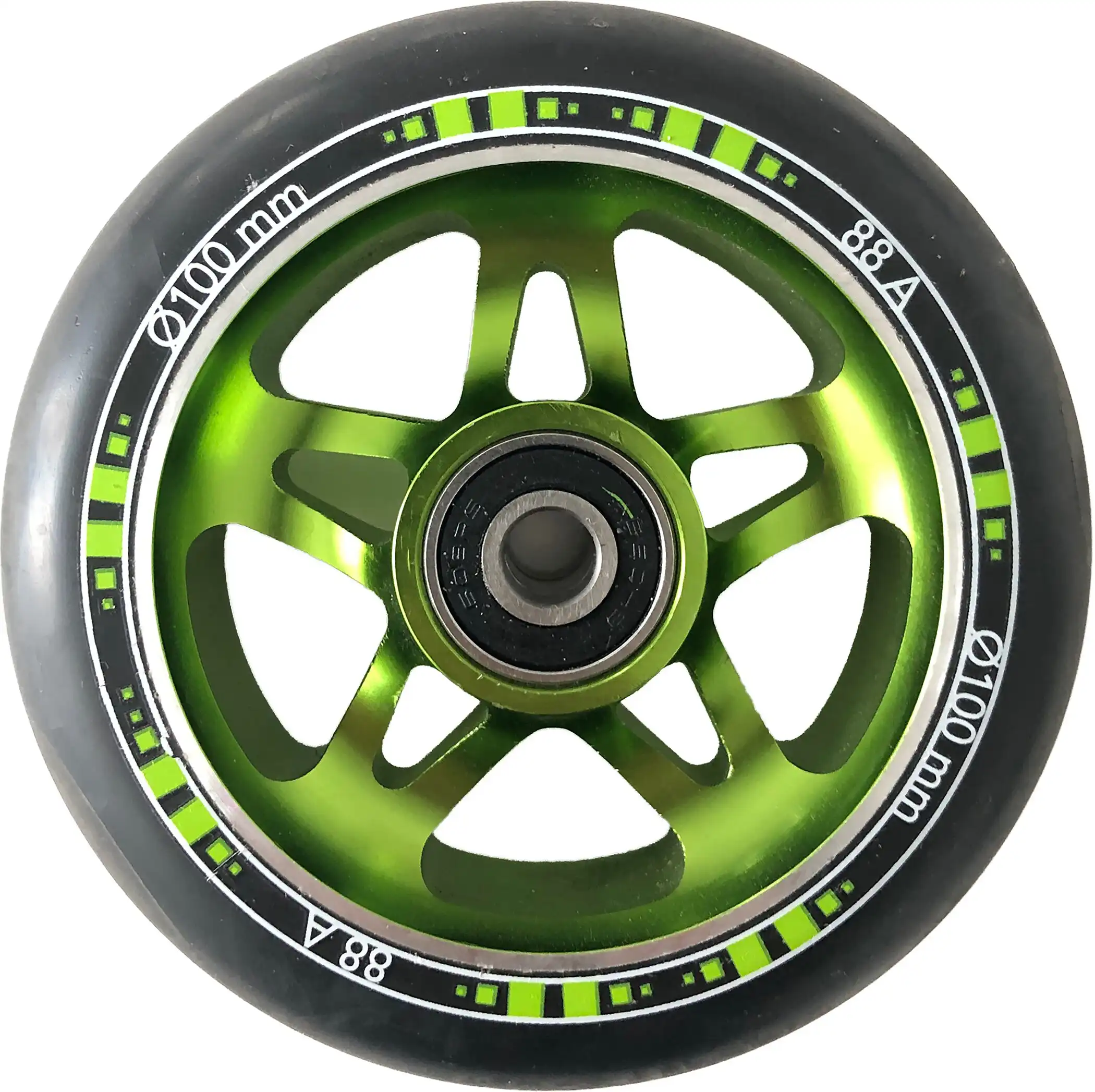 - Wertiger HIC-Compression-Steuersatz, 100mm Räder aus griffigem PU (Härtegrad 88A), hochwertige eloxierte Alufelge, die auch Sprüngen und Stunts deutlich besser standhält als billige Kunststoff-Felgen!