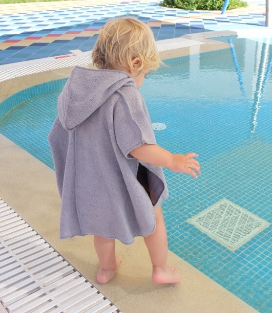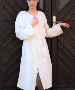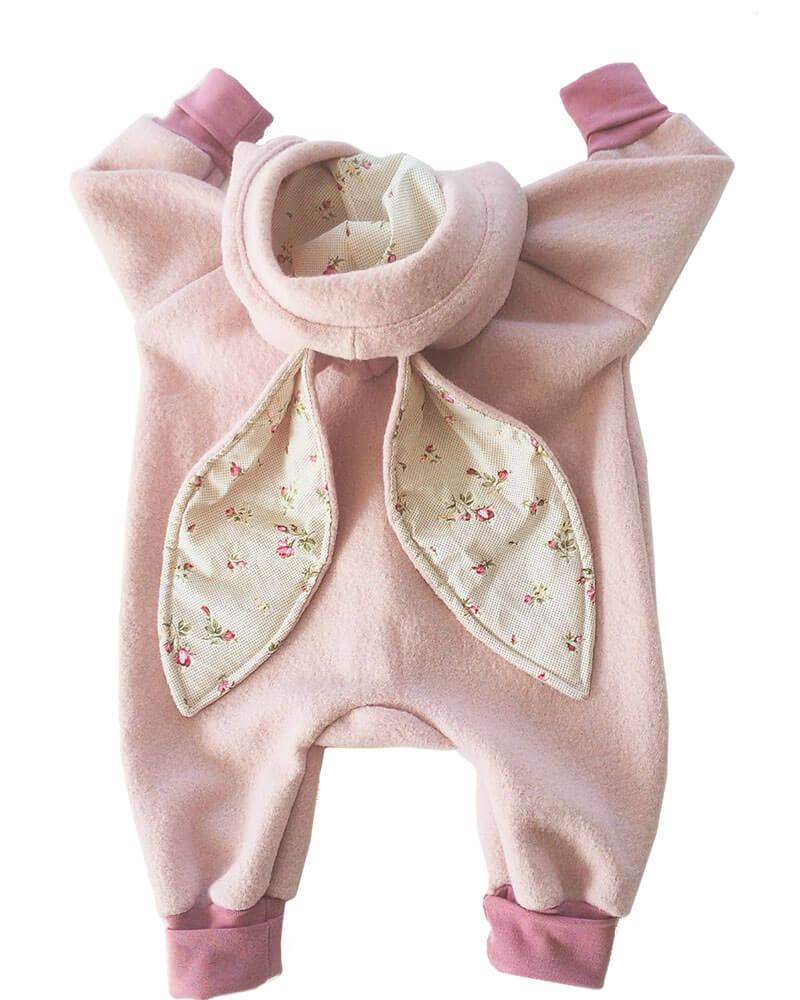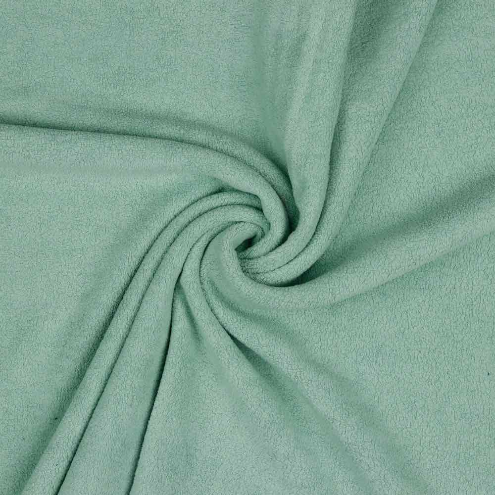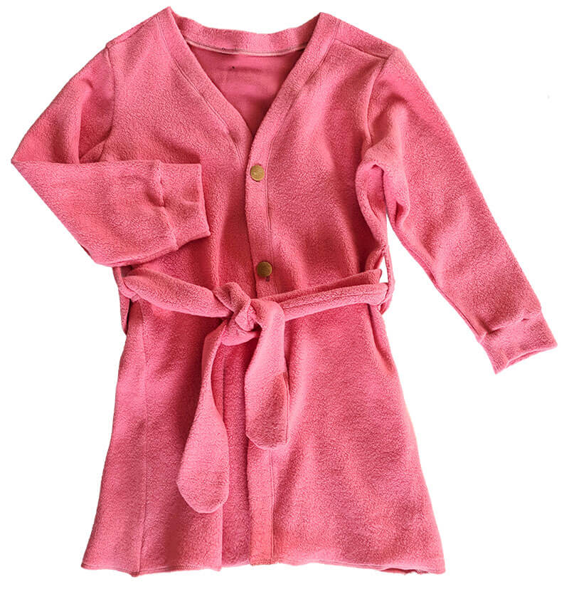 Eine weiche, kuschelige Ware. Von außen sieht die Ware wie ein Teddystoff aus, von der Dicke und vom Griff her ist sie mit einem Sweatshirtstoff vergleichbar. Ideal für Mützen, Loopschals, Sweatshirts, Hosen, Jacken und vieles mehr. Abbildung Badeponcho Franzi, Mützen und Loopschal in Grau, Pullover Emil in Farbe Beige. Schnittmuster Haarturban Madita und Anzug Selma in Rosa.