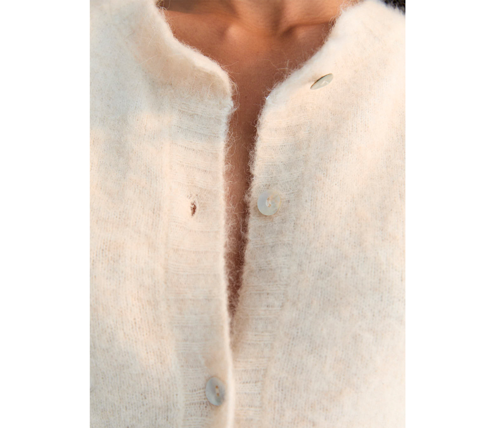 Diese Strickjacke aus hochwertiger Alpaka- und Merinowolle bietet außergewöhnlichen Komfort und Wärme. Sie hat eine klassische Passform und elegante Knöpfe für einen raffinierten, eleganten Look. Perfekt für Lagenlooks bei kühlerem Wetter – sie vereint Komfort, Stil und zeitlose Eleganz.