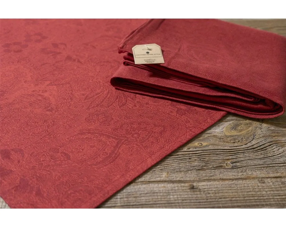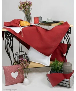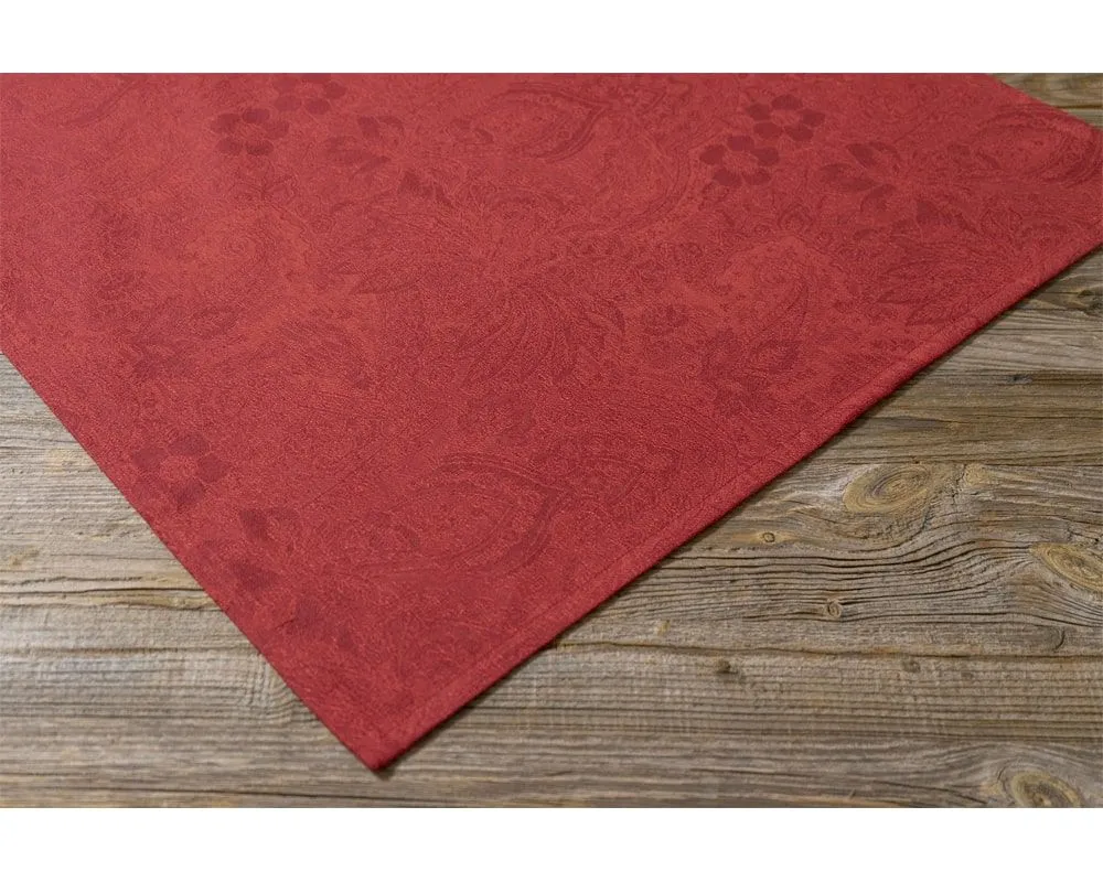 Die Heimtextilien der Serie EDDA verbinden zeitlose Schönheit mit hochwertiger Verarbeitung. Mit ihrem floralen Webmuster und der kräftigen granatroten Farbe zaubern sie eine warme und elegante Atmosphäre in dein Esszimmer oder deine Küche. Perfekt für alle, die den klassischen Landhausstil lieben.