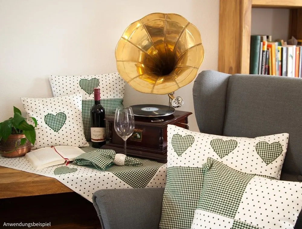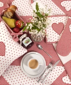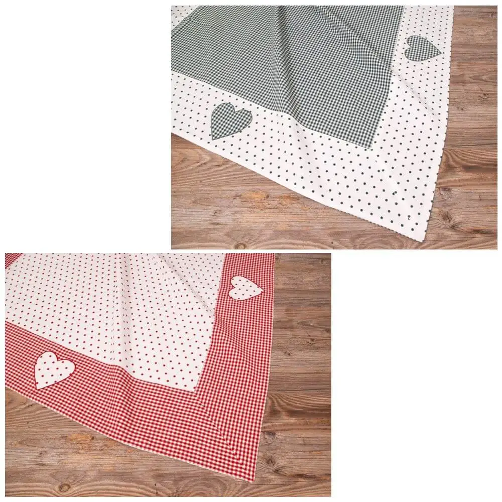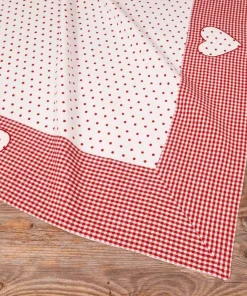 Die Mitteldecke LISE vereint traditionellen Landhausstil mit liebevollen Details. Mit einem klassischen Karo-Muster, dekorativer Borte und einer charmanten Herz-Applikation ist sie die perfekte Wahl für eine gemütliche und stilvolle Tischdekoration. Erhältlich in zwei harmonischen Farben – Rot-Weiß und Grün-Weiß – bietet sie eine vielseitige Gestaltungsmöglichkeit für dein Zuhause.