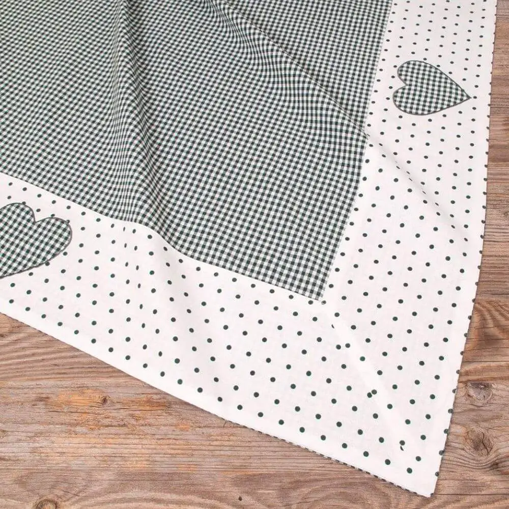 Mitteldecke LISE – Karierter Landhausstil mit Borte und Herz-Applikationen