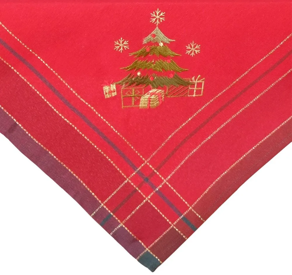 Tischdecke Mitteldecke Weihnachten Christbaum gestickt 85×85 cm rot bunt gold