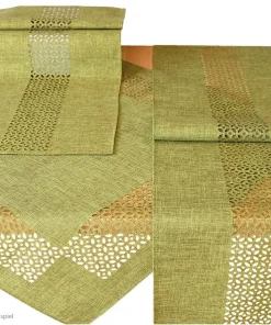 Tischläufer Mitteldecke Durchbrochene Ornamente grün Tischwäsche 1 Stk 40×90 cm