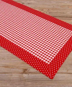 Tischläufer Mitteldecken Landhaus Premium HANNE Karo Punkte Borte 40×150 cm 2 Farben 1Stk
